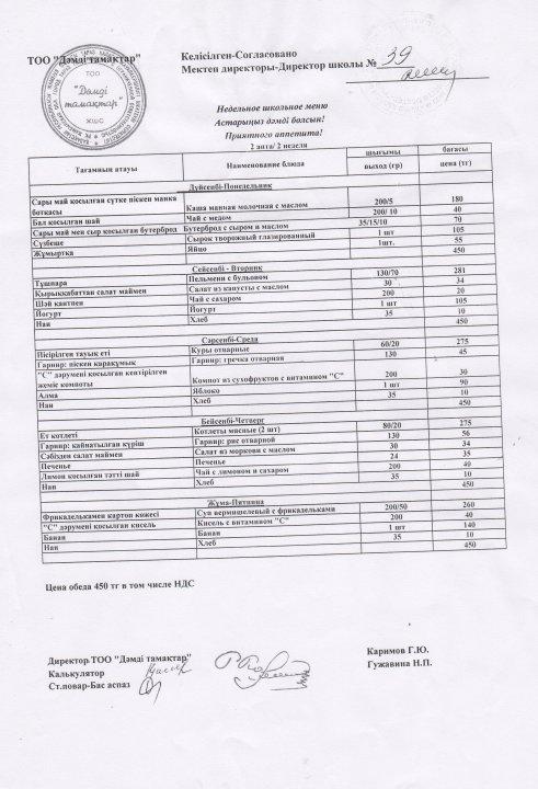 Ыстық тамақ » Жамбыл облысы Тараз қаласы білім бөлімінің "И.В. Панфилов атындағы №39 мектеп - гимназия» мемлекеттік коммуналдық мекемесі