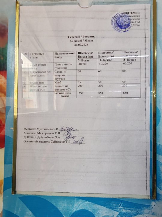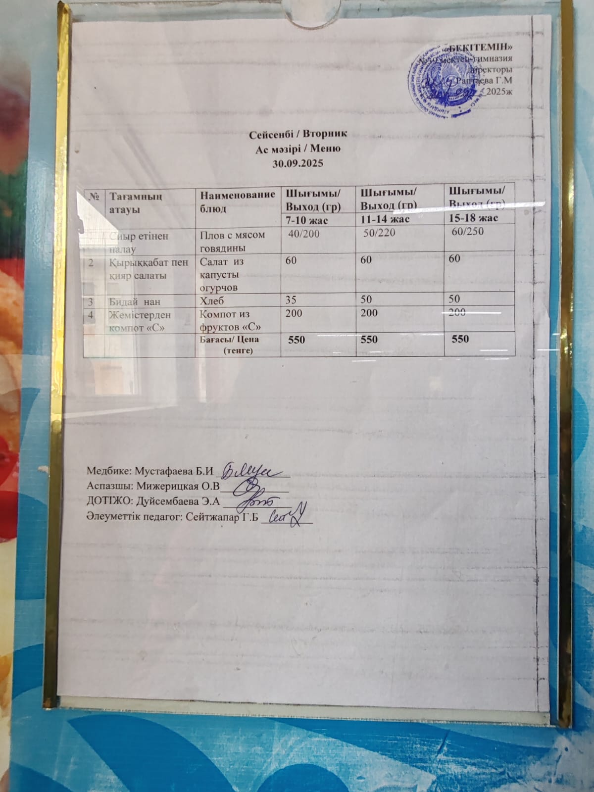 Күнделікті ас мәзірі » Жамбыл облысы Тараз қаласы білім бөлімінің "И.В. Панфилов атындағы №39 мектеп - гимназия» мемлекеттік коммуналдық мекемесі