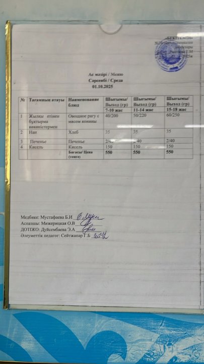 Күнделікті ас мәзірі » Жамбыл облысы Тараз қаласы білім бөлімінің "И.В. Панфилов атындағы №39 мектеп - гимназия» мемлекеттік коммуналдық мекемесі