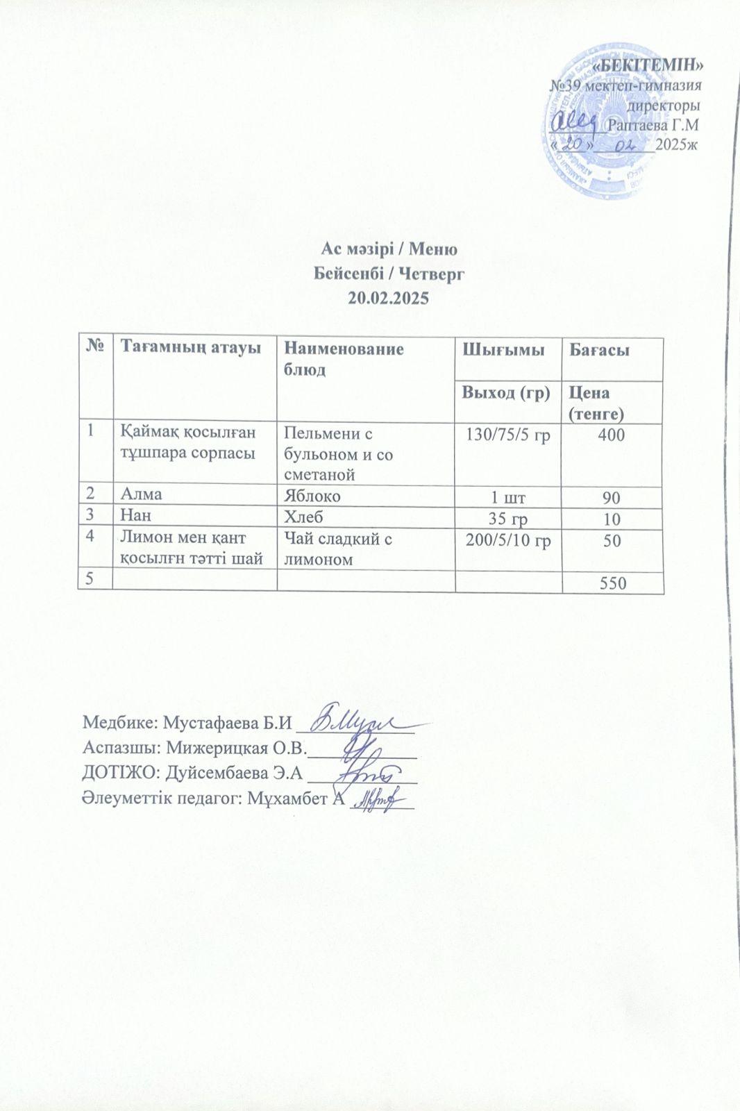 Күнделікті ас мәзірі » Жамбыл облысы Тараз қаласы білім бөлімінің "И.В. Панфилов атындағы №39 мектеп - гимназия» мемлекеттік коммуналдық мекемесі