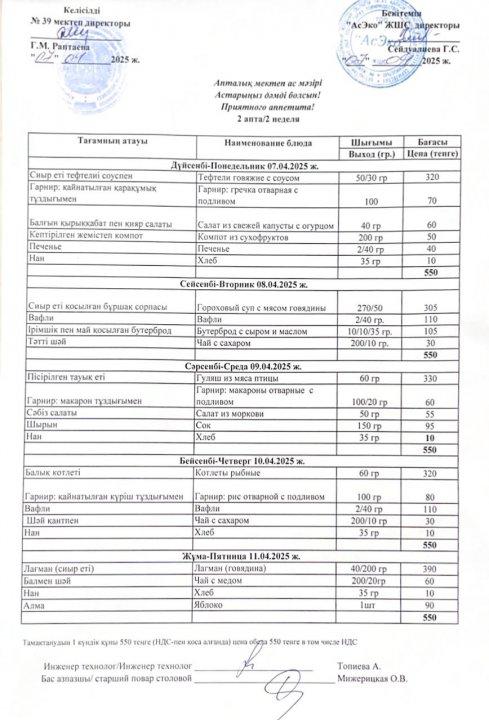 Тамақтандыру » Страница 4 » Жамбыл облысы Тараз қаласы білім бөлімінің "И.В. Панфилов атындағы №39 мектеп - гимназия» мемлекеттік коммуналдық мекемесі