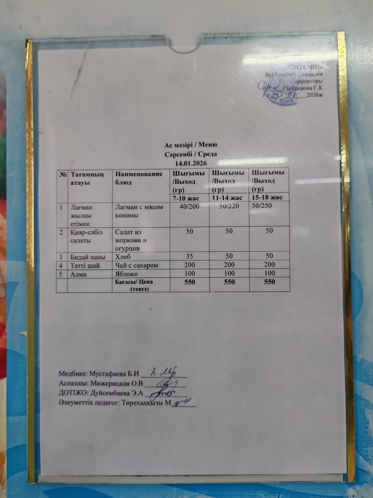 Күнделікті ас мәзірі » Жамбыл облысы Тараз қаласы білім бөлімінің "И.В. Панфилов атындағы №39 мектеп - гимназия» мемлекеттік коммуналдық мекемесі