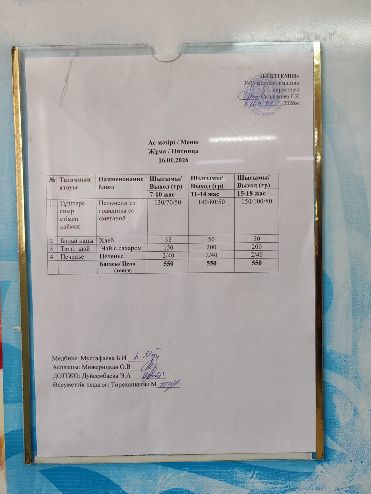 Күнделікті ас мәзірі » Жамбыл облысы Тараз қаласы білім бөлімінің "И.В. Панфилов атындағы №39 мектеп - гимназия» мемлекеттік коммуналдық мекемесі