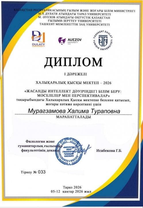 «Плюсы и минусы использования искусственного интеллекта в образовании» » Жамбыл облысы Тараз қаласы білім бөлімінің "И.В. Панфилов атындағы №39 мектеп - гимназия» мемлекеттік коммуналдық мекемесі