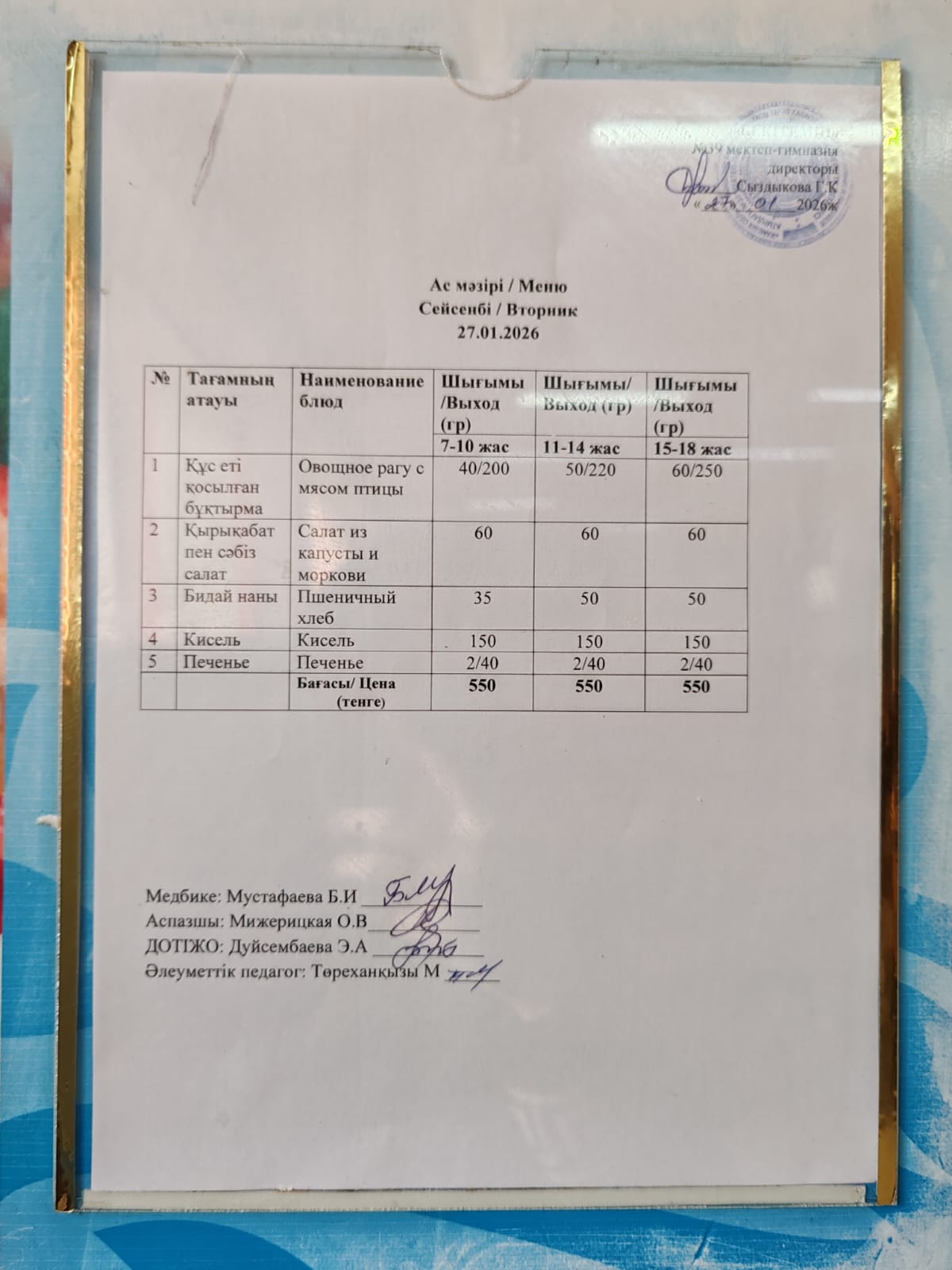 Күнделікті ас мәзірі » Жамбыл облысы Тараз қаласы білім бөлімінің "И.В. Панфилов атындағы №39 мектеп - гимназия» мемлекеттік коммуналдық мекемесі