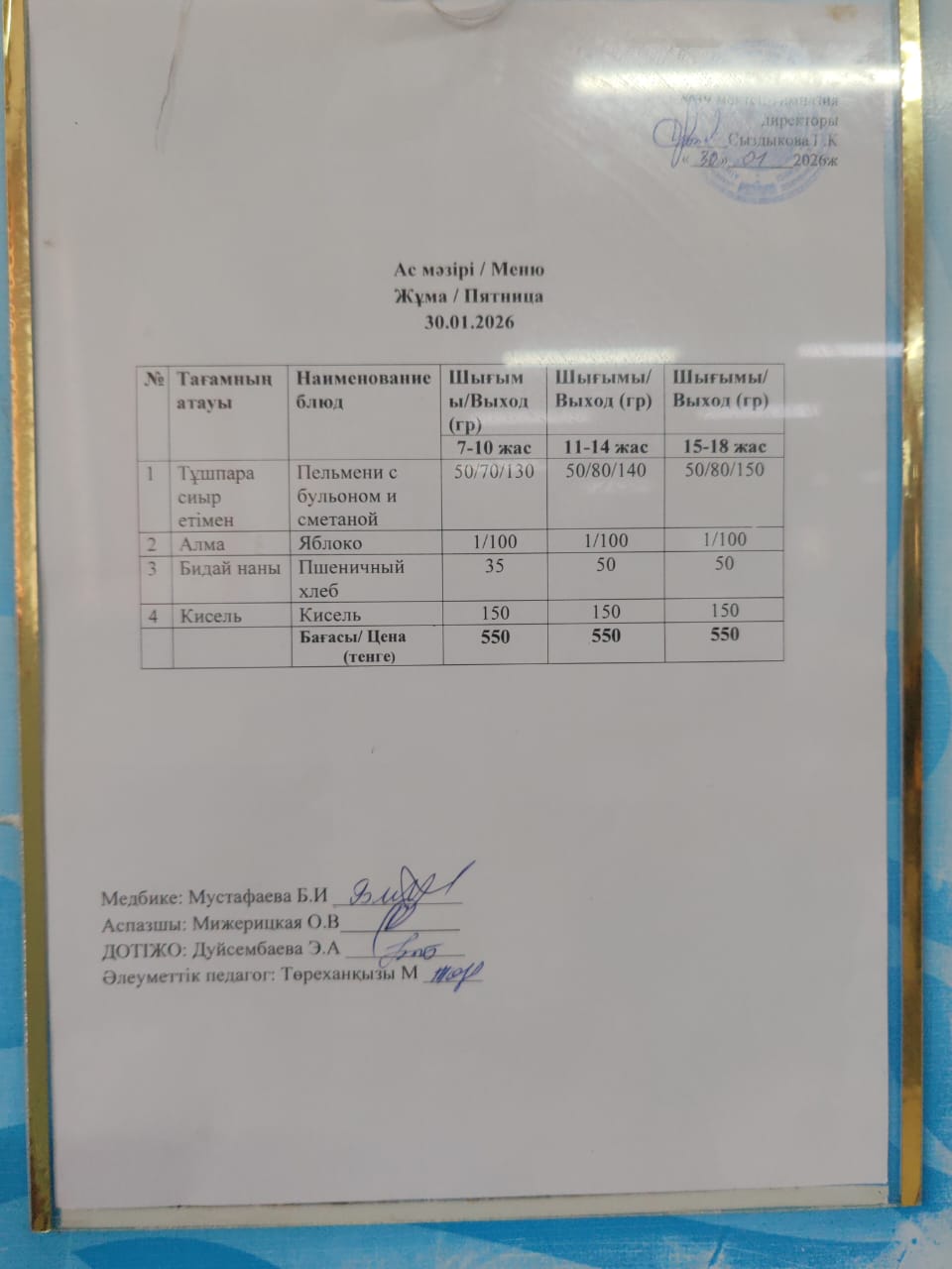 Күнделікті ас мәзірі » Жамбыл облысы Тараз қаласы білім бөлімінің "И.В. Панфилов атындағы №39 мектеп - гимназия» мемлекеттік коммуналдық мекемесі