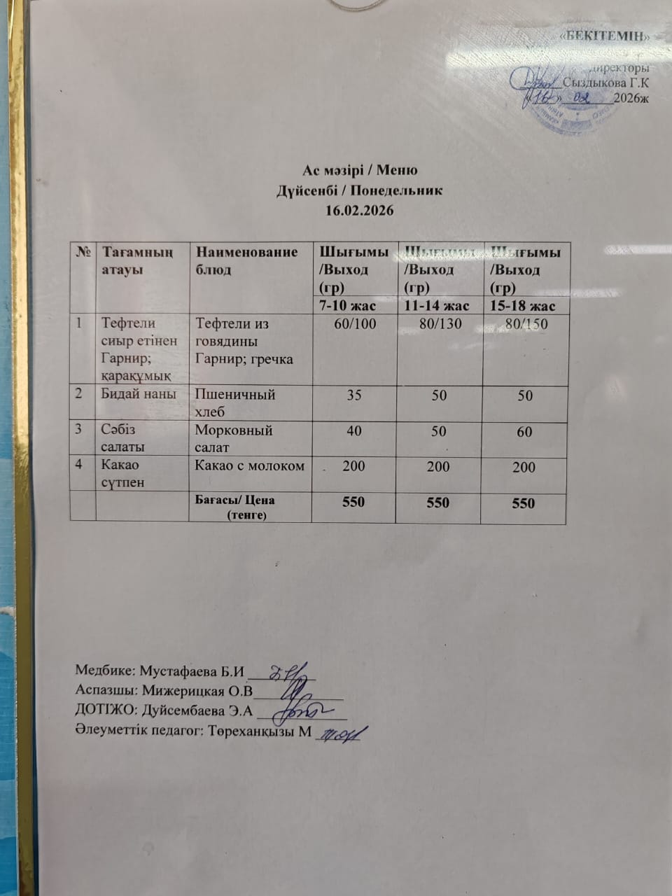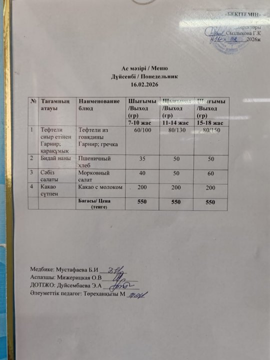 Күнделікті ас мәзірі » Жамбыл облысы Тараз қаласы білім бөлімінің "И.В. Панфилов атындағы №39 мектеп - гимназия» мемлекеттік коммуналдық мекемесі