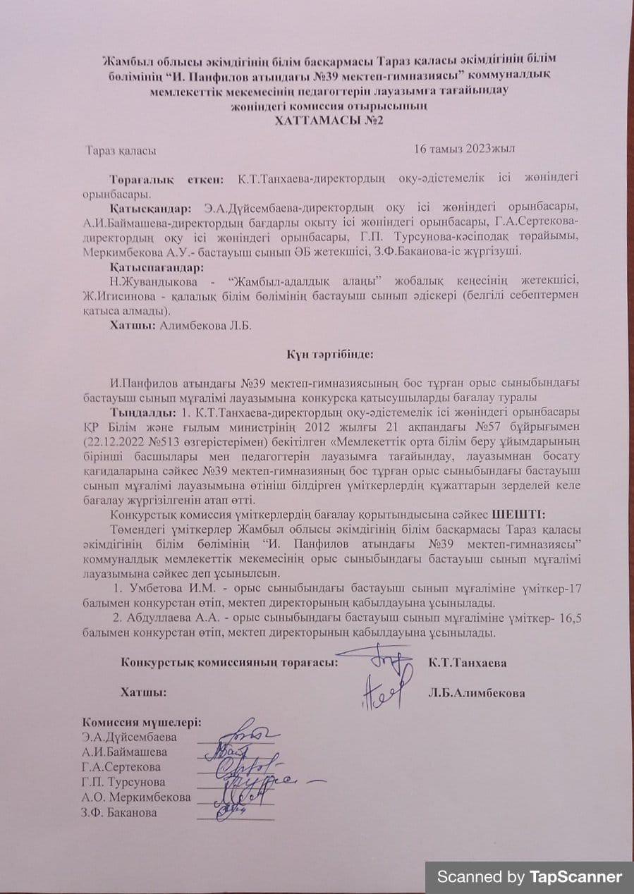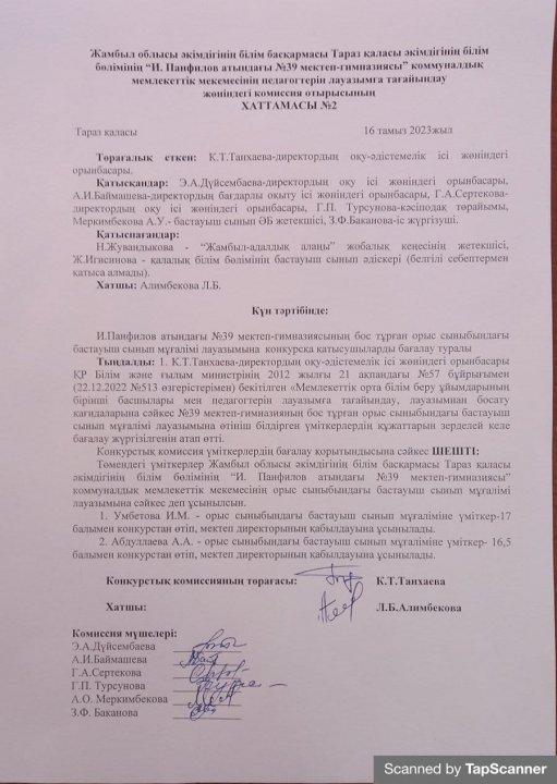 16 август 2023 0 1 2 3 4 5 Педагогтерді бос лауазымға қабылдау бойынша комиссия отырысының ҚОРЫТЫНДЫСЫ