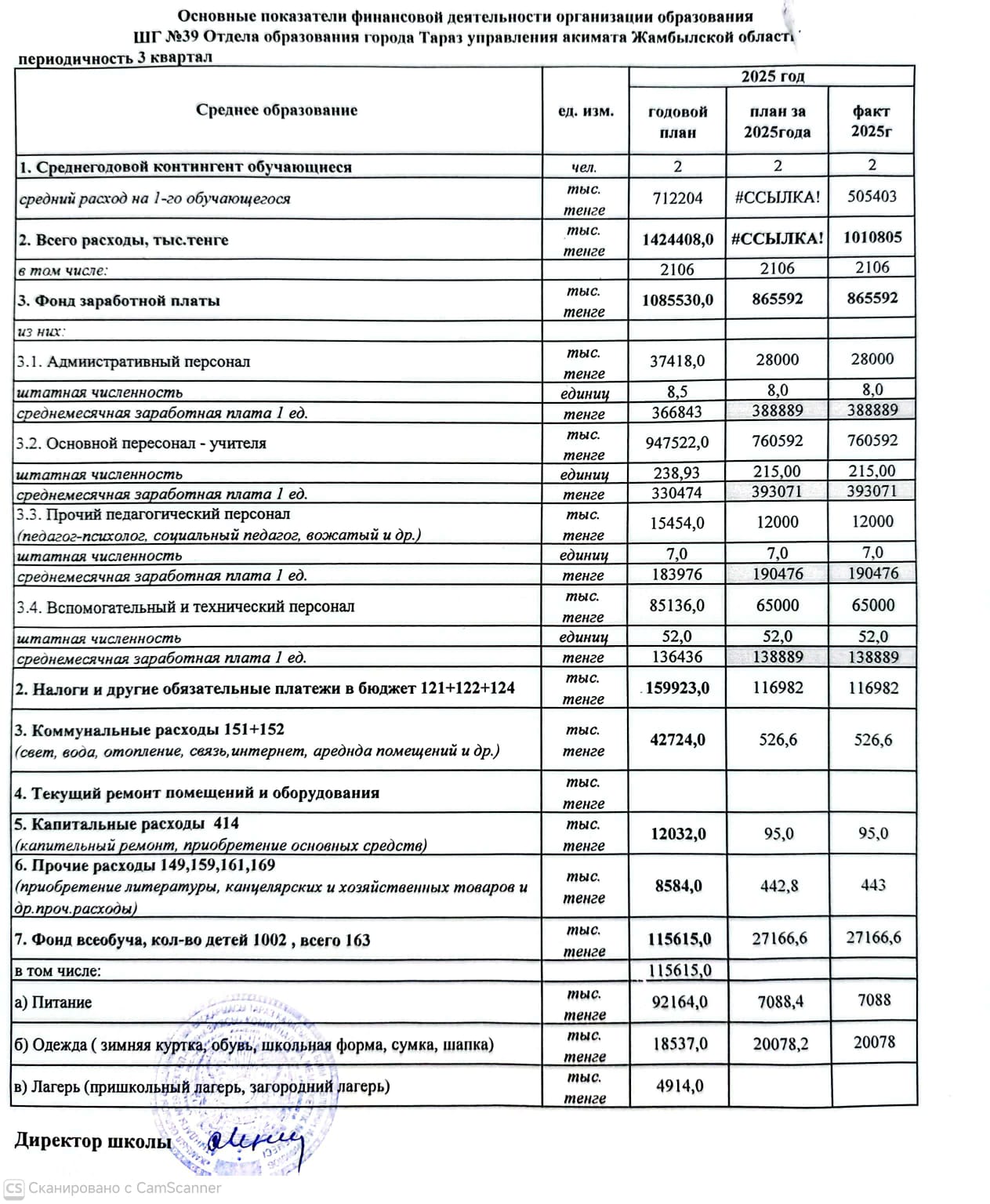 Основные показатели финансовой деятельности организации образования ШГ №39 Отдела образования города Тараз управления акимата Жамбылской области » Жамбыл облысы Тараз қаласы білім бөлімінің "И.В. Панфилов атындағы №39 мектеп - гимназия» мемлекеттік коммуналдық мекемесі