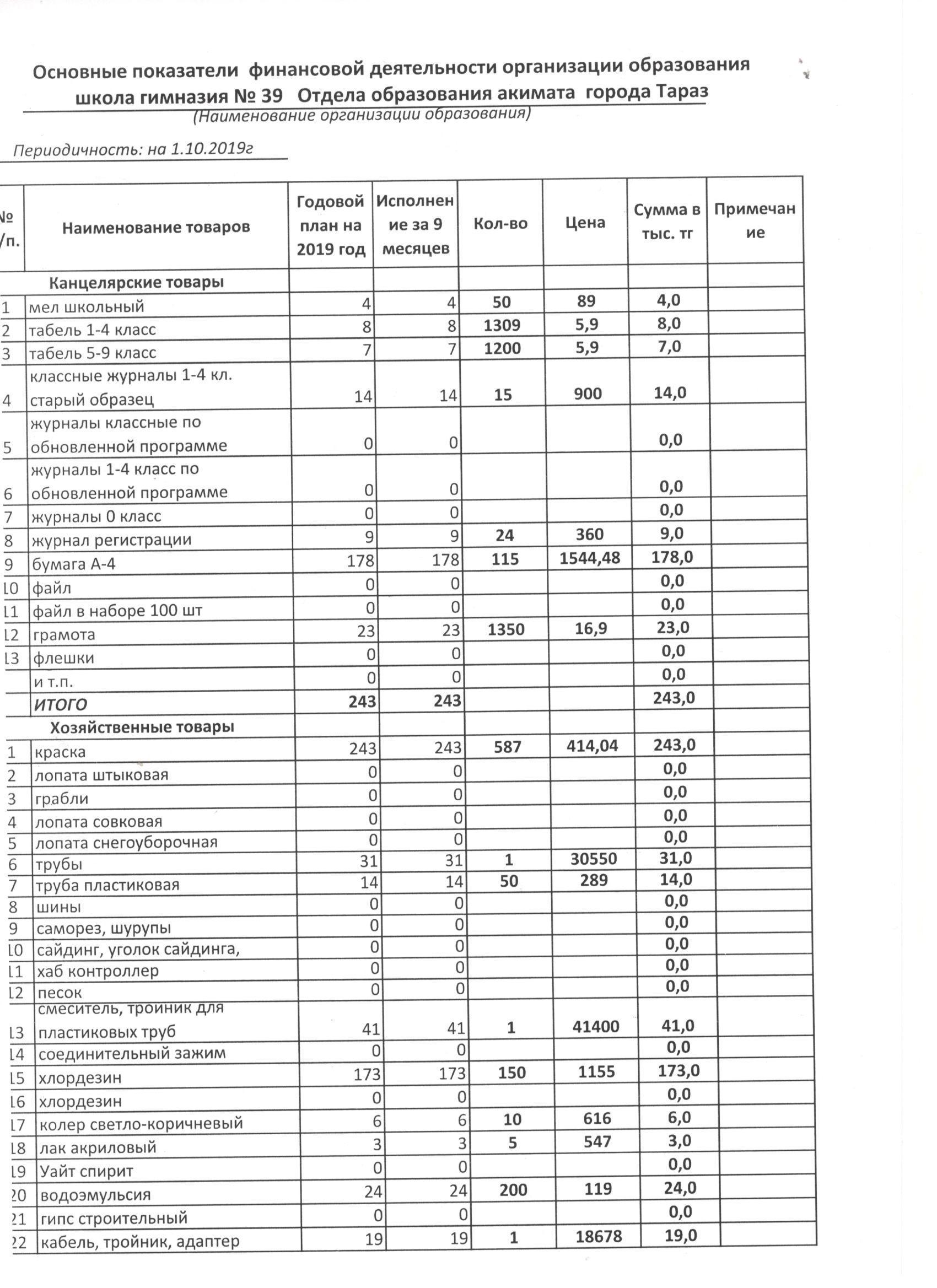01 ноябрь 2019 0 1 2 3 4 5 Основные показатели финансовой деятельности организации образования по 149 специфике.
