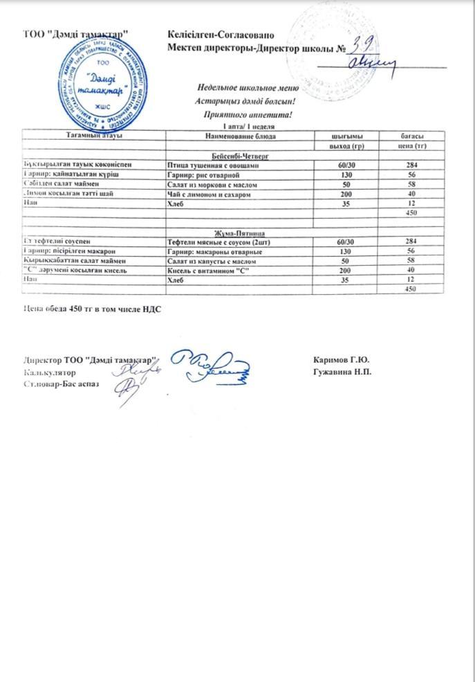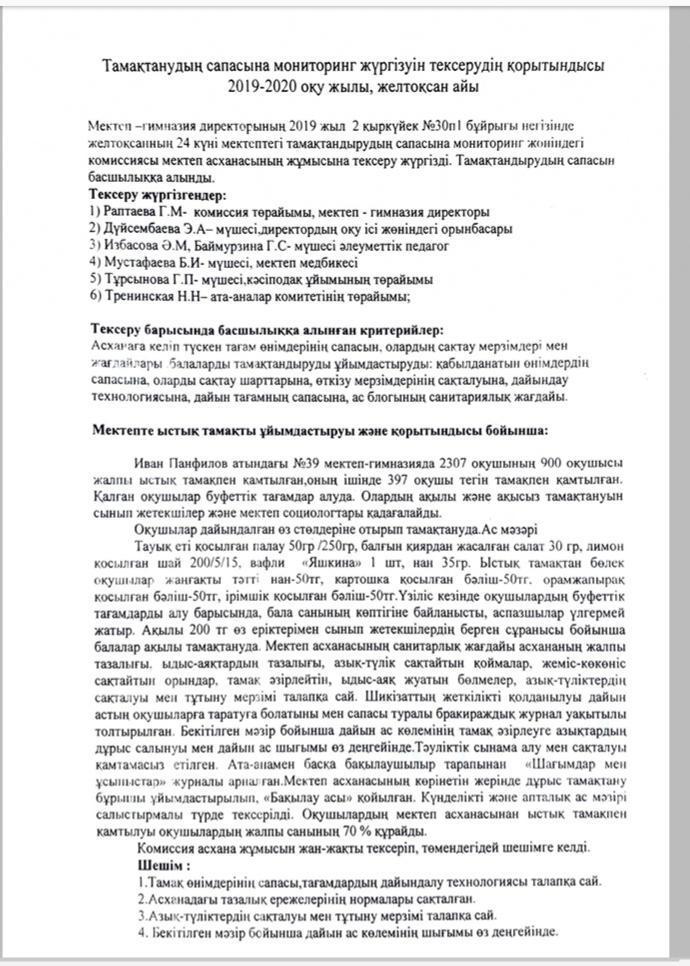 Ыстық тамақ » Жамбыл облысы Тараз қаласы білім бөлімінің "И.В. Панфилов атындағы №39 мектеп - гимназия» мемлекеттік коммуналдық мекемесі